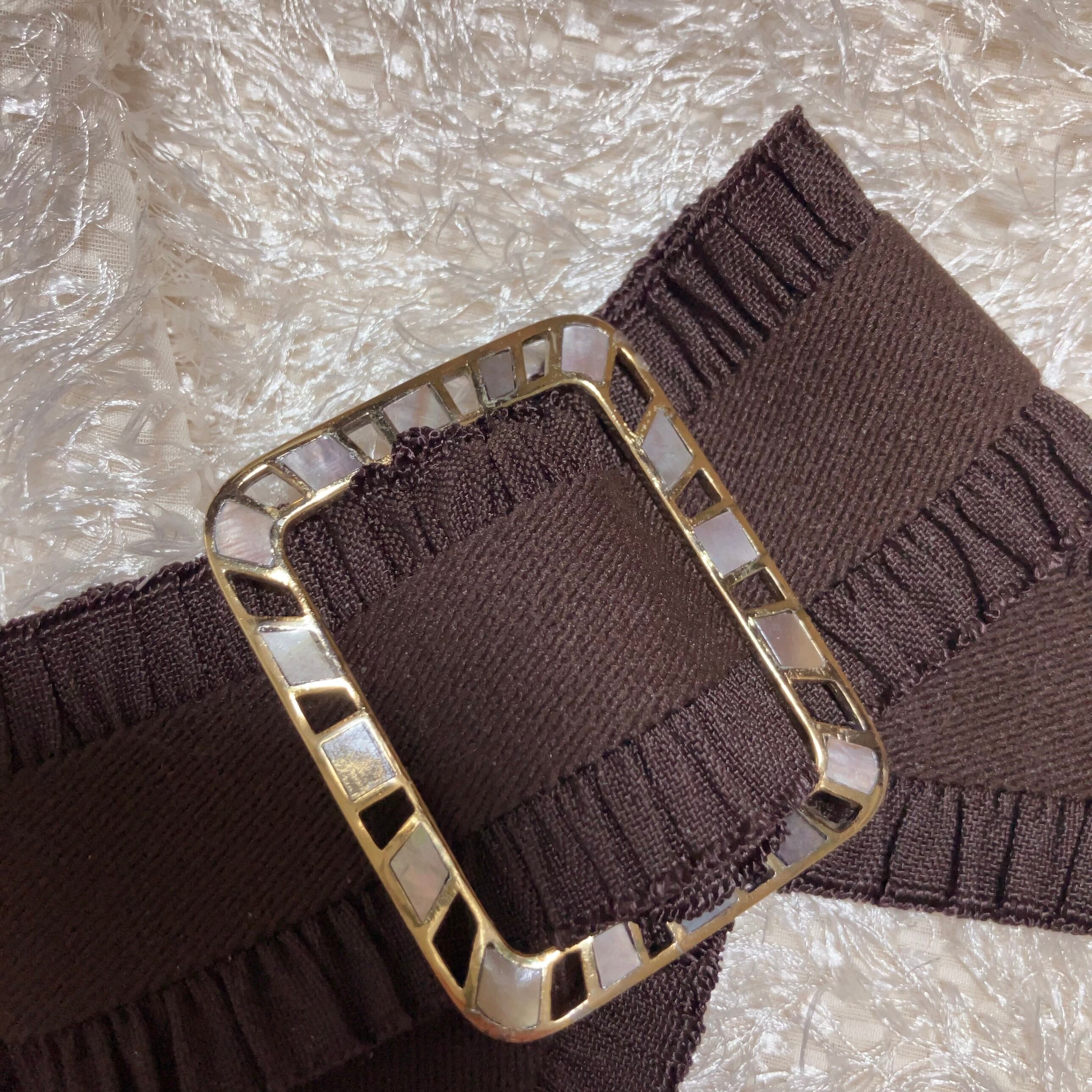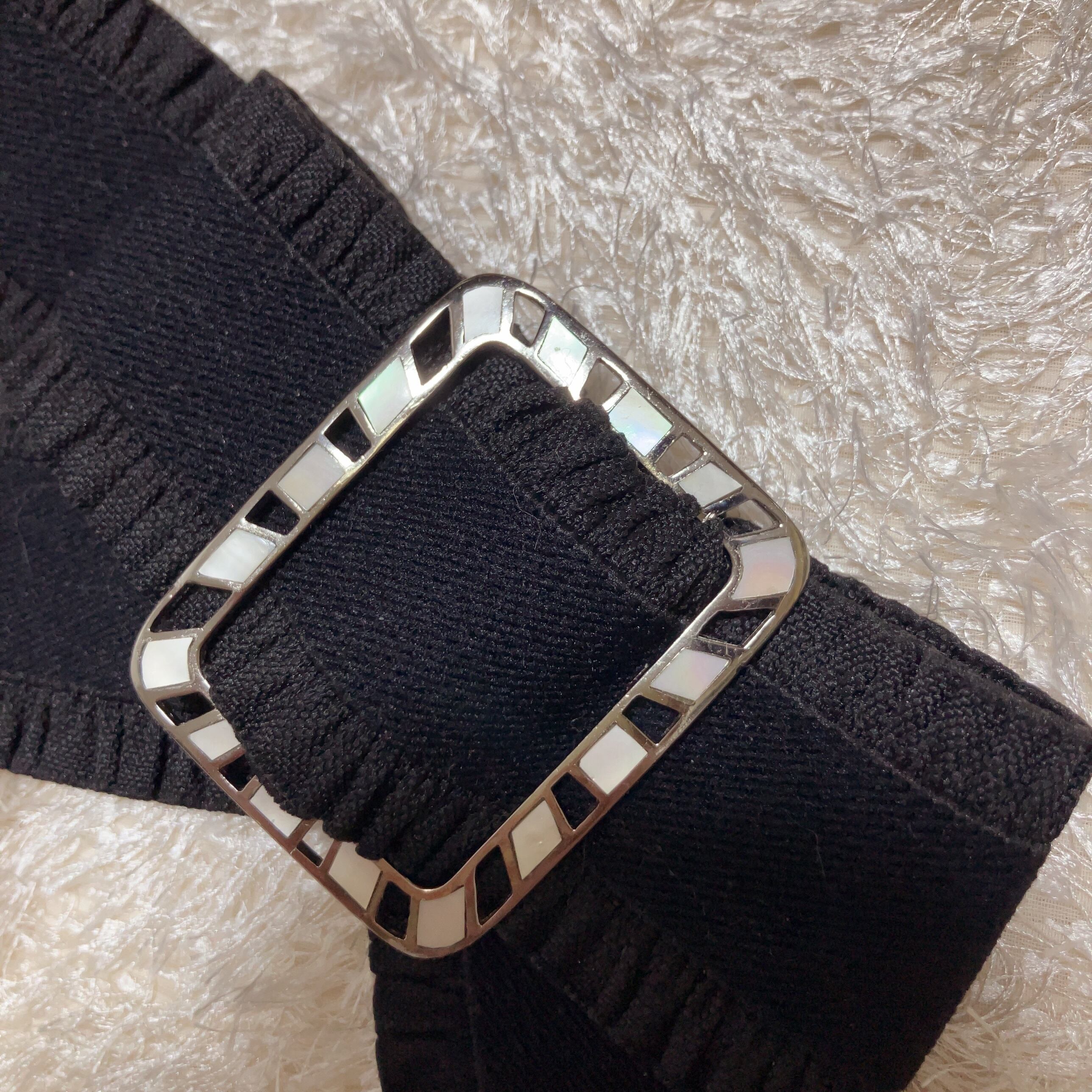 バックルは、ステンドグラスのようデザインです。