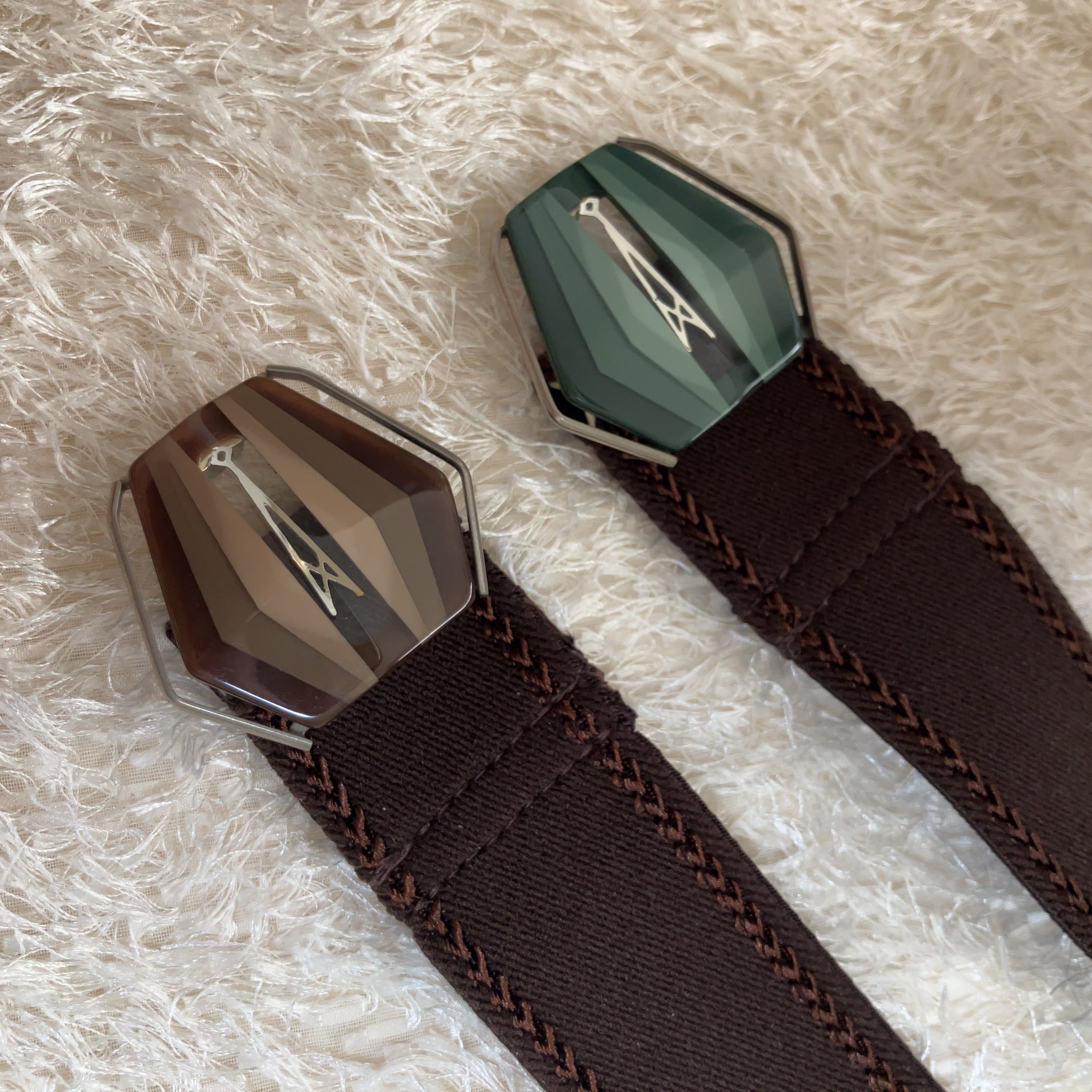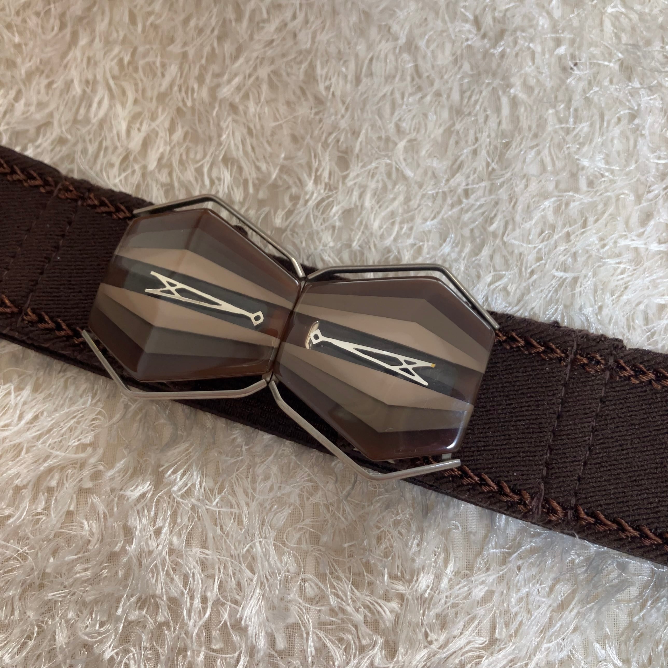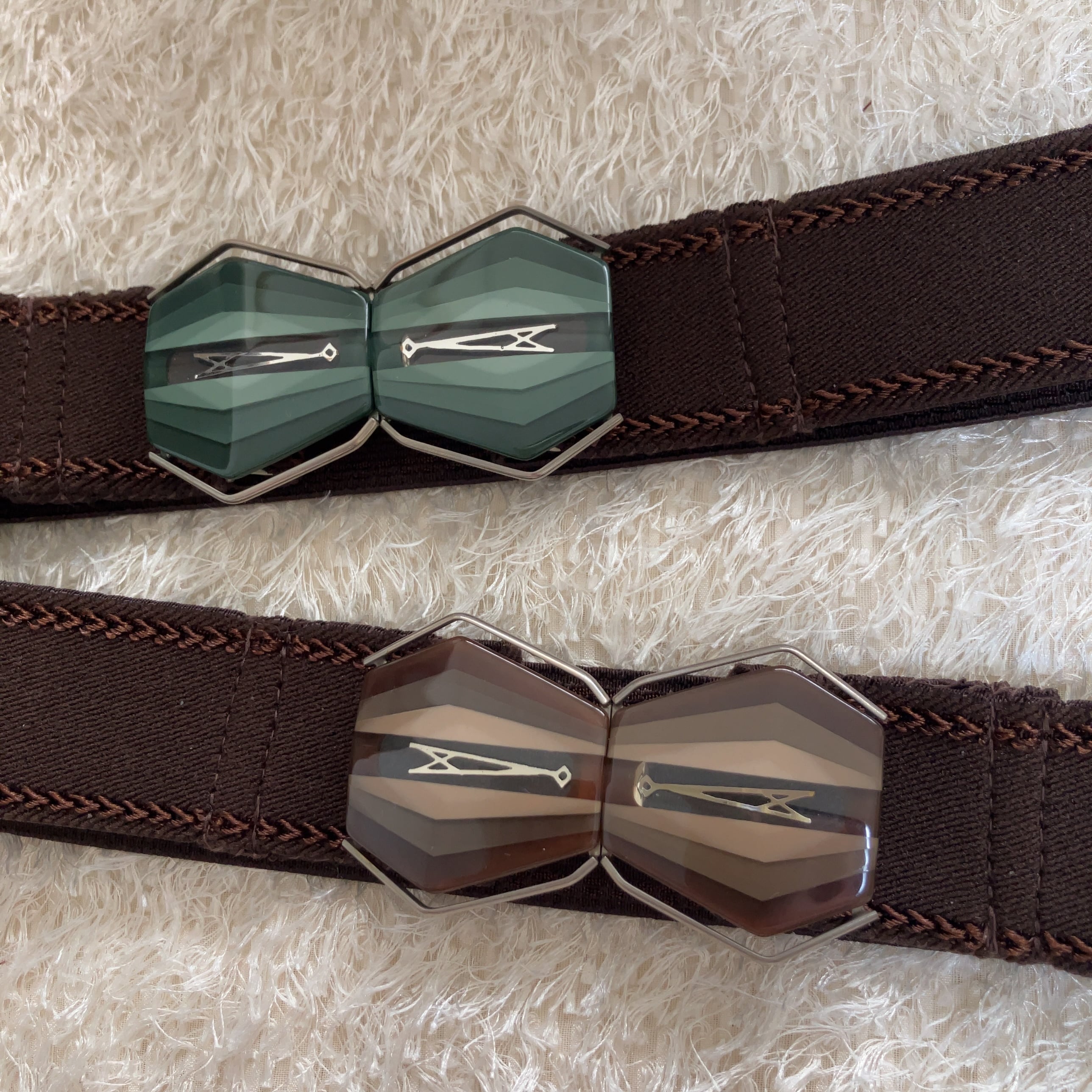 レトロなバックルを使用したゴムベルトです。