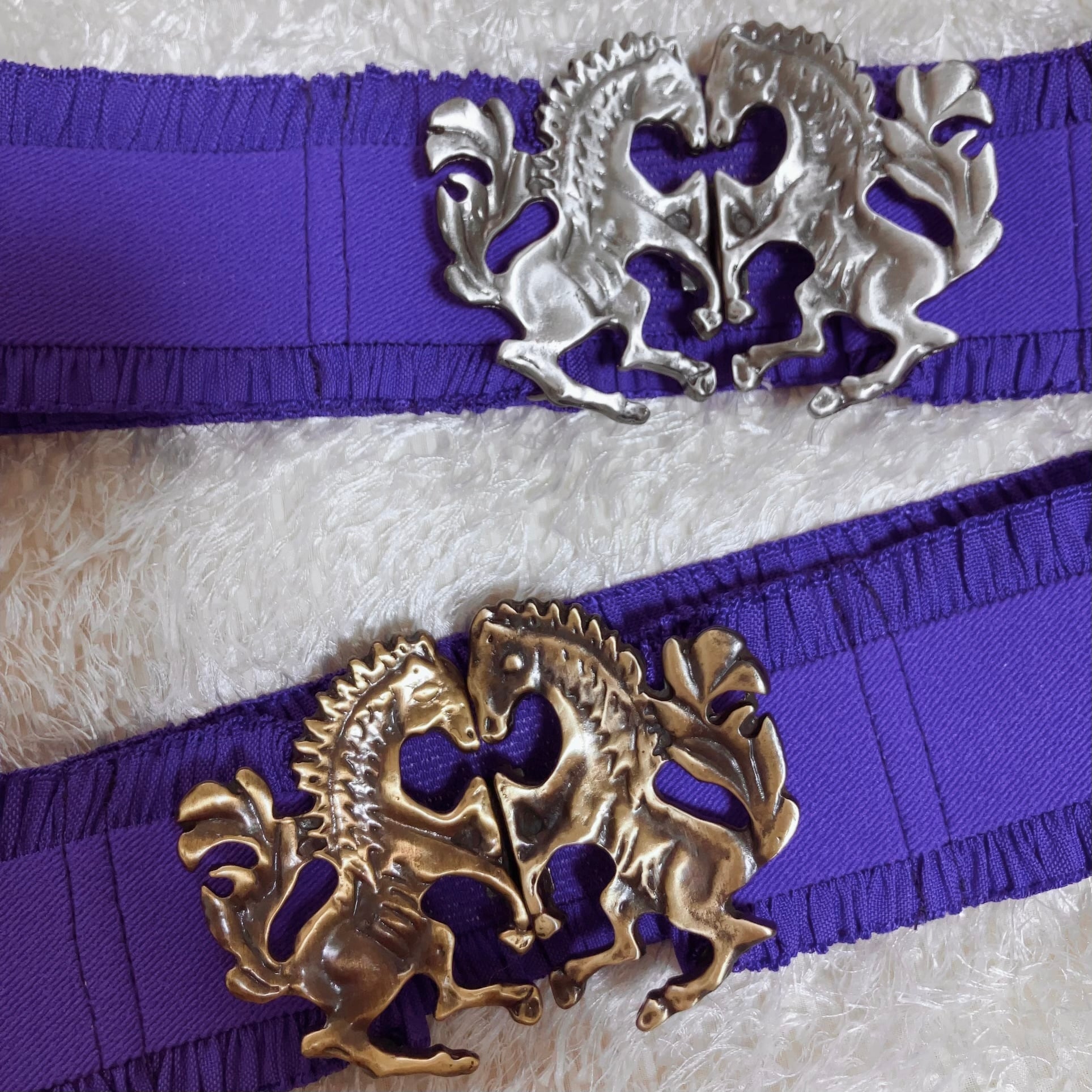 2頭のお馬が向かい合わせになったバックルを使用しました。