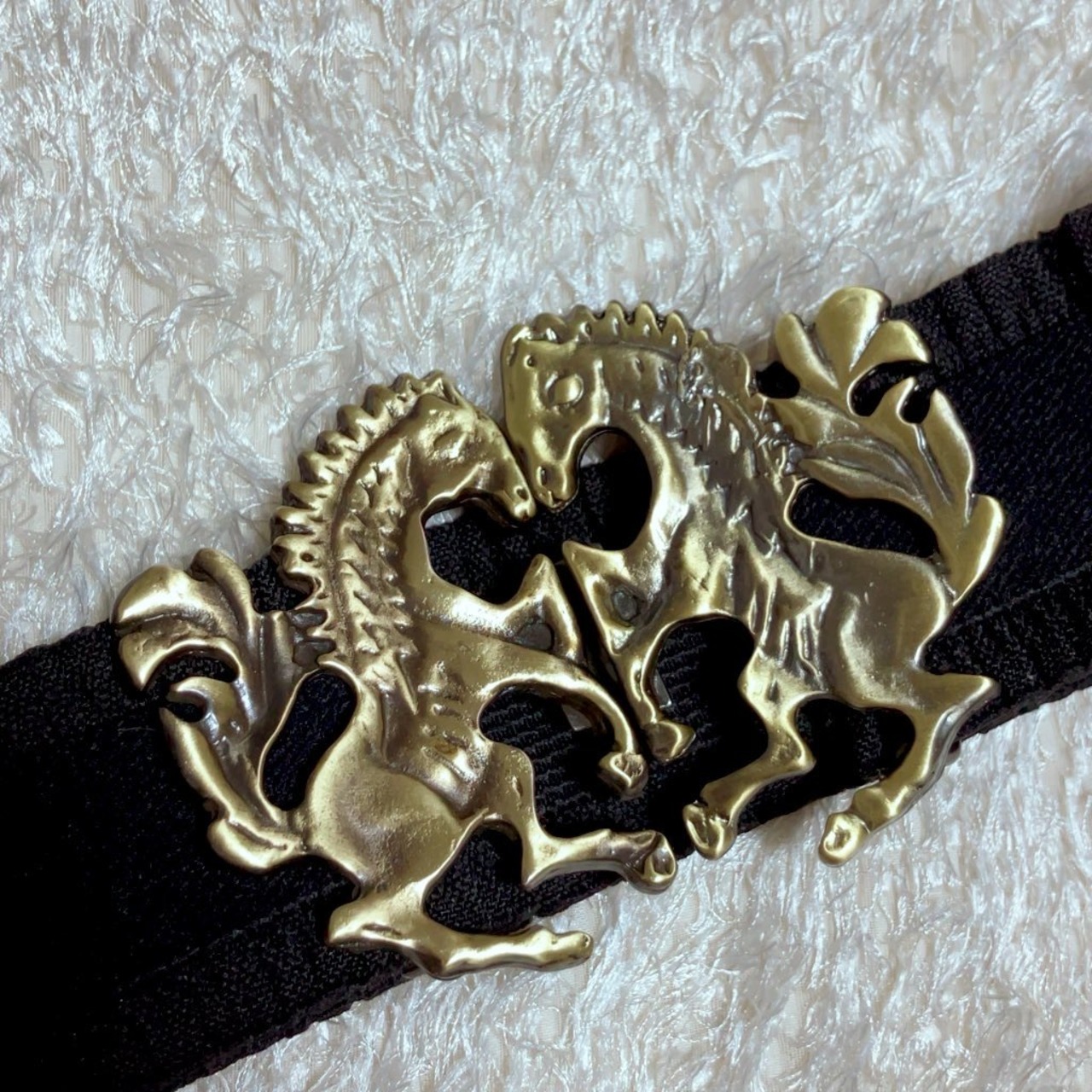 2頭のお馬が向かい合わせになったバックルを使用しました。